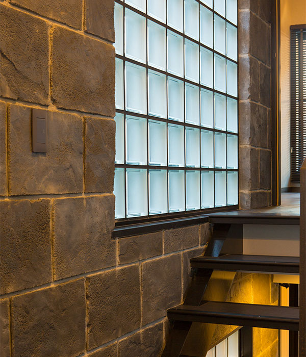 強度を保ちながら軽量化された特殊材料モルターは、耐震性も高く、また通常のレンガや石貼りの壁のように部分的に剥がれ落ちる心配も無いので安全です。